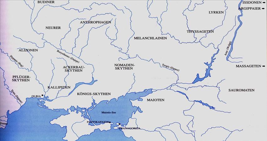Направление предполагаемых путешествий Геродота с обозначением поселений и городов